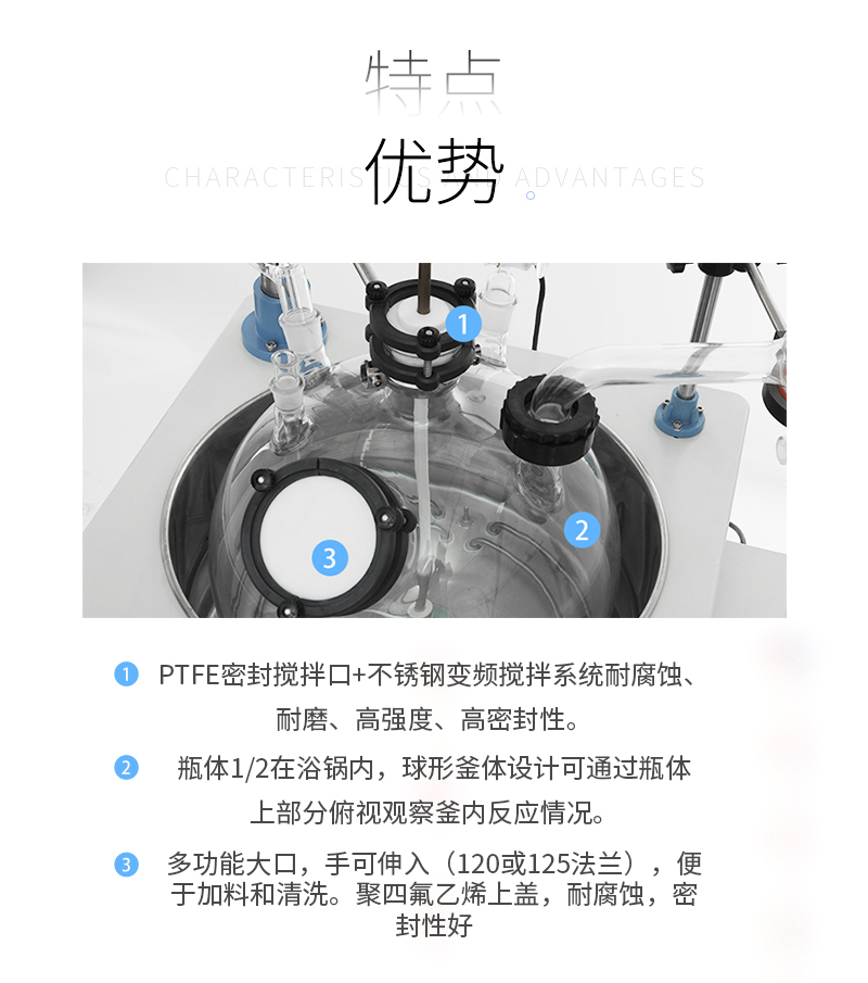 噴四氟型單層玻璃反應釜,是內層放置反應溶媒可做攪拌反應,夾層通過冷熱源(冷凍液、水、導熱油)循環,可使內層實現恒溫加熱或冷卻反應,可控制反應溶媒的蒸餾與回流;是現代合成化工、生物制藥和新材料制備的理想試驗、生產設備。